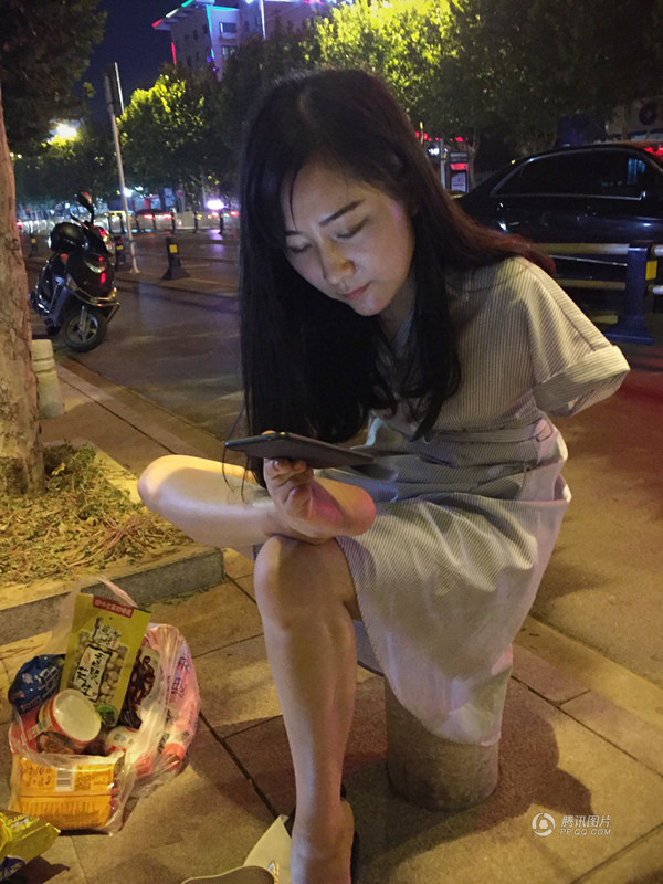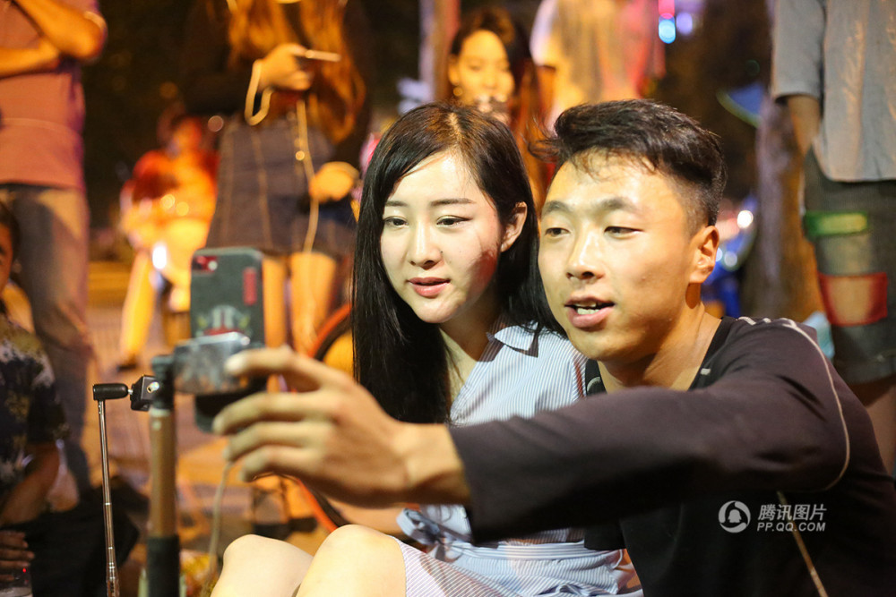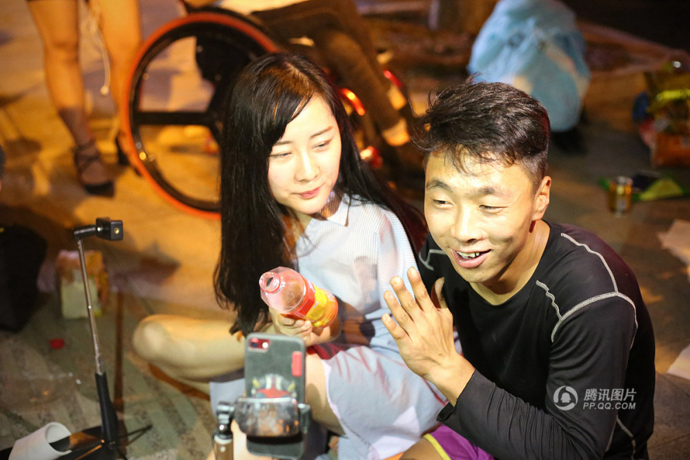 9月18日,安徽省阜阳市清河广场上,几位“特殊”的年轻人正聚在一起进行了一场别开生面的直播。无臂励志女孩杨莉也是其中一员。魏振伟 摄